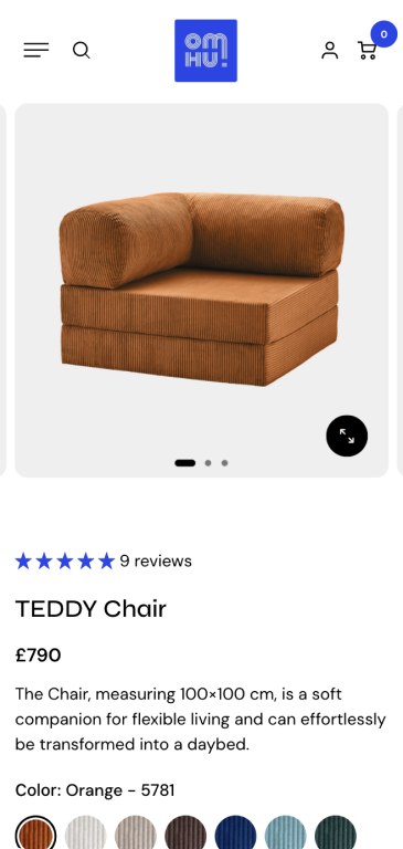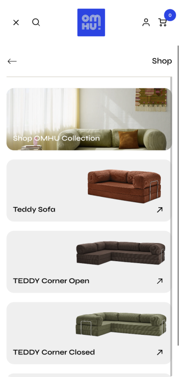 The new site is clean and modern, seamlessly blending form and function – just like OMHU’s famous TEDDY sofa.